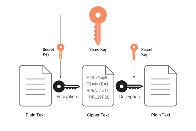 In symmetric cryptography, a single key is used to cipher and decipher the message. When the cipher is run on a message, a cryptogram is obtained. When the cipher is run on the cryptogram, you will get the plain message. The following figure illustrates this process.